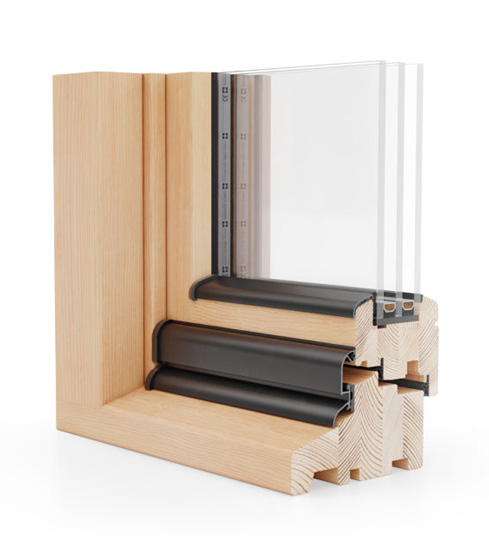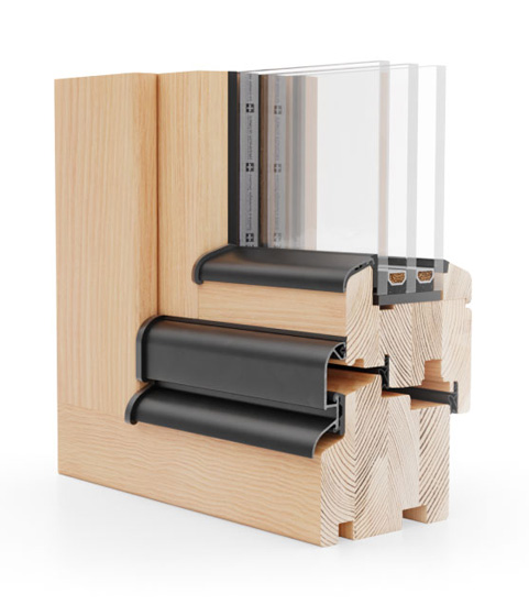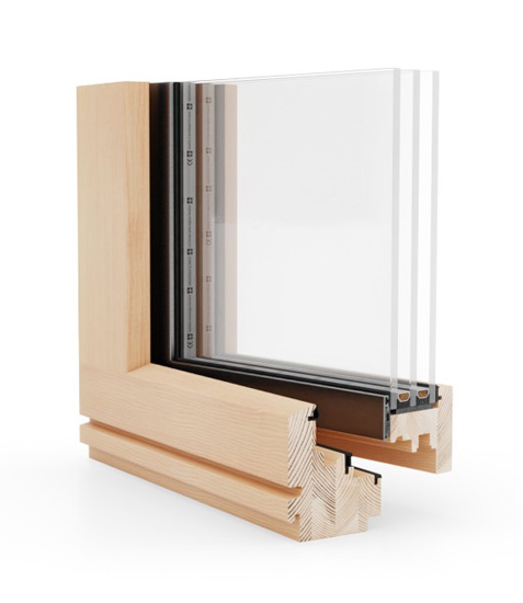 - Verglasung mit Paketen von 34 bis 45 mm bei 3-fach Verglasung